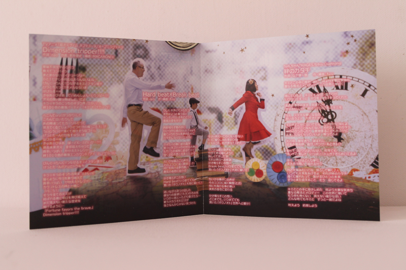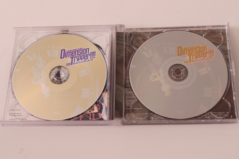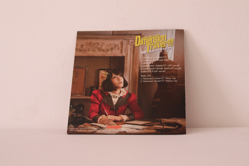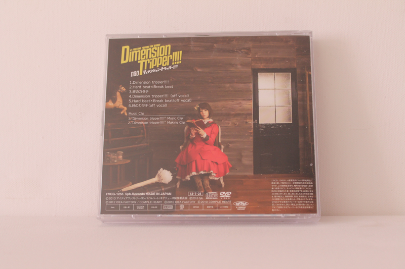 ![]() ![]() Von dieser CD gibt es wieder 2 Versionen die sich jedoch nur darin Unterscheiden das die Neptune Collabo Edition keine DVD beinhaltet, dafür aber die Edition die ich habe kaum Neptunia Bilder aufzeigt. Inhaltlich ist die CD jedoch mehr als nur 1A, vertreten sind 3 Songs die Dazugehörigen Instrumentals sowie eine DVD mit zwei Videos. ![]() ![]() Im Booklet sind wie von Japanischen CDs gewohnt die Lyrics zu den Liedern. Hinter CD1 sehen wir 5pb und MAGES die wohn inzwischen sowas wie Maskottchen Status bei 5pb. Records und deren Mutterunternehmen MAGES haben. ![]() ![]() Auf den allen übrigen Bildern auf Booklet, Cover und Rückseite sehen wir die Person hinter Gamindustri's grösstem Idol nao. Als Extras bietet 5pb. Records diesmal einen Code für eine Japanische Android und iPhone App names YomeColle, was kurz fpr Yome Collection, ist was soviel wie "Wife Collection" bedeutet, ansich nur eine kleine Fun App in der man durch Codes oder auch Freeware bestimmte Mädchen aus Animes und Games laden kann und verschiedenste dinge tun kann, Dieser Code würde mir Purple Heart verschaffen ich besitzt jedoch auch einen für Noire und Black Heart sowie Nepgear. Einlösen kann ich diese jedoch nicht weil die App nur für Japanische Geräte ist und man sie nur illegal durch eine APK datei installieren könnte. Das Zweite Extra ist ein Gitarren Pick, Dieser wird von 5pb. sowohl im Anime als auch in den Spielen Verwendet und ist somit sozusagen mein Erstes Item das in den Spielen auftaucht. Tracklist: CD1: 1. Dimenstion Tripper!!!! - nao 2. Hard beat x Break beat - 5pb. (CV: nao) 3. Kizuna no Katachi - 5pb. (CV: nao) x MAGES (CV: Furukawa Kaori) [CD+DVD Edition Only] 4. Dimension Tripper!!!! (Off Vocal) 5. Hard beat x Break best (Off Vocal) 6. Kizuna no Katachi (Off Vocal) CD2: 1. Dimension Tripper!!!! Music Clip 2. Dimension Tripper!!!! Making Clip |